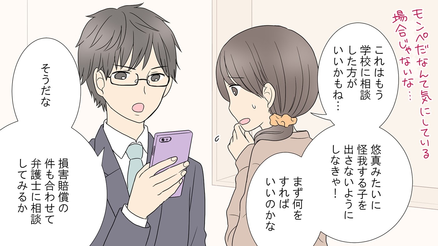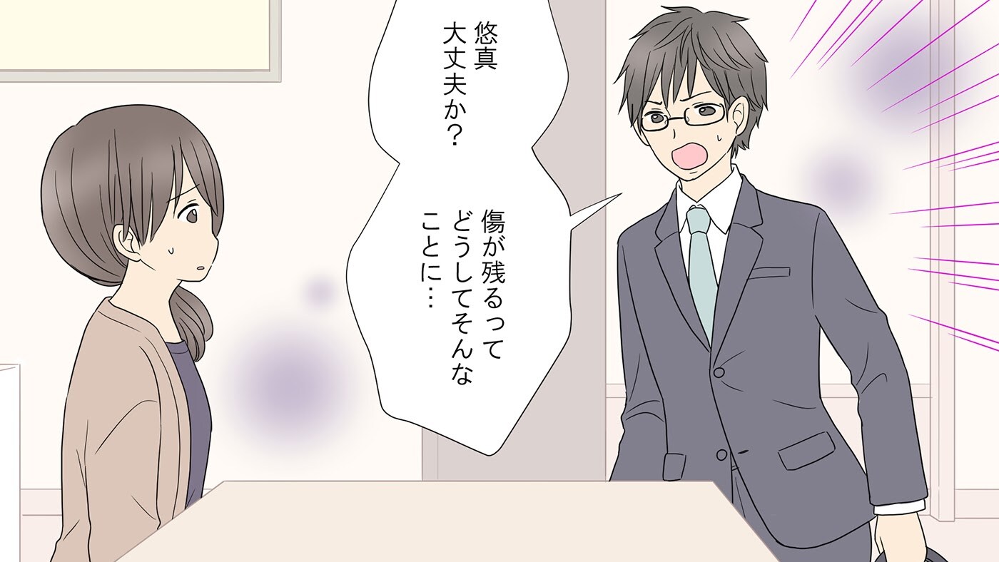 学校でケンカを止めに入った時に、ケガをして顔に傷が残ってしまった息子の悠真。病院から帰ると、ケガをさせた太一くんママから自宅に電話がありました。